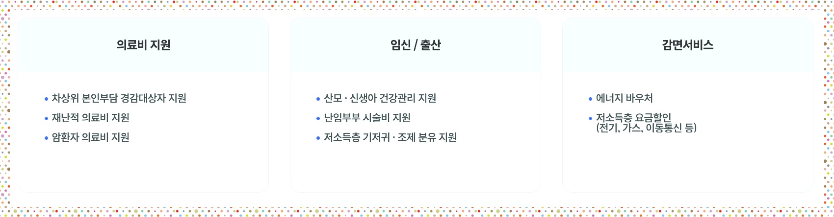 표준 중위 소득은 중위 소득 수준의 가구의 소득 금액입니다. 가구마다 가구수가 다르기 때문에 가구 수의 중위소득도 다릅니다. 이제 저소득 기준을 설정했으므로 정부에서 어떻게 자금을 어떻게 받을 수 있는지 확인할 차례입니다.