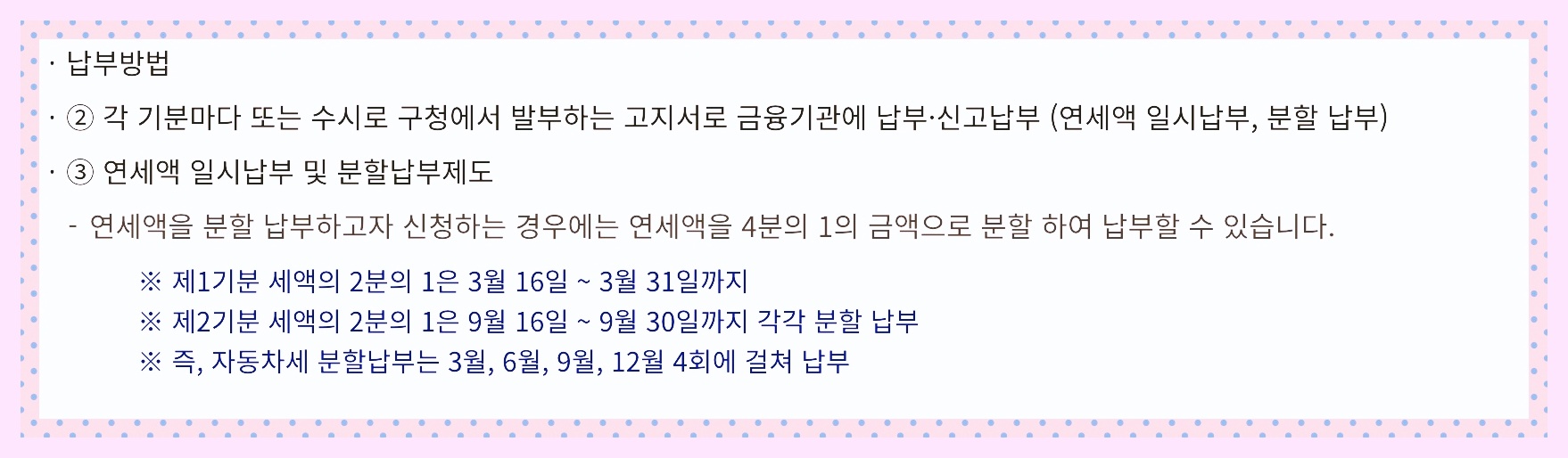 - 자동차세 납부 방법 안내 목차